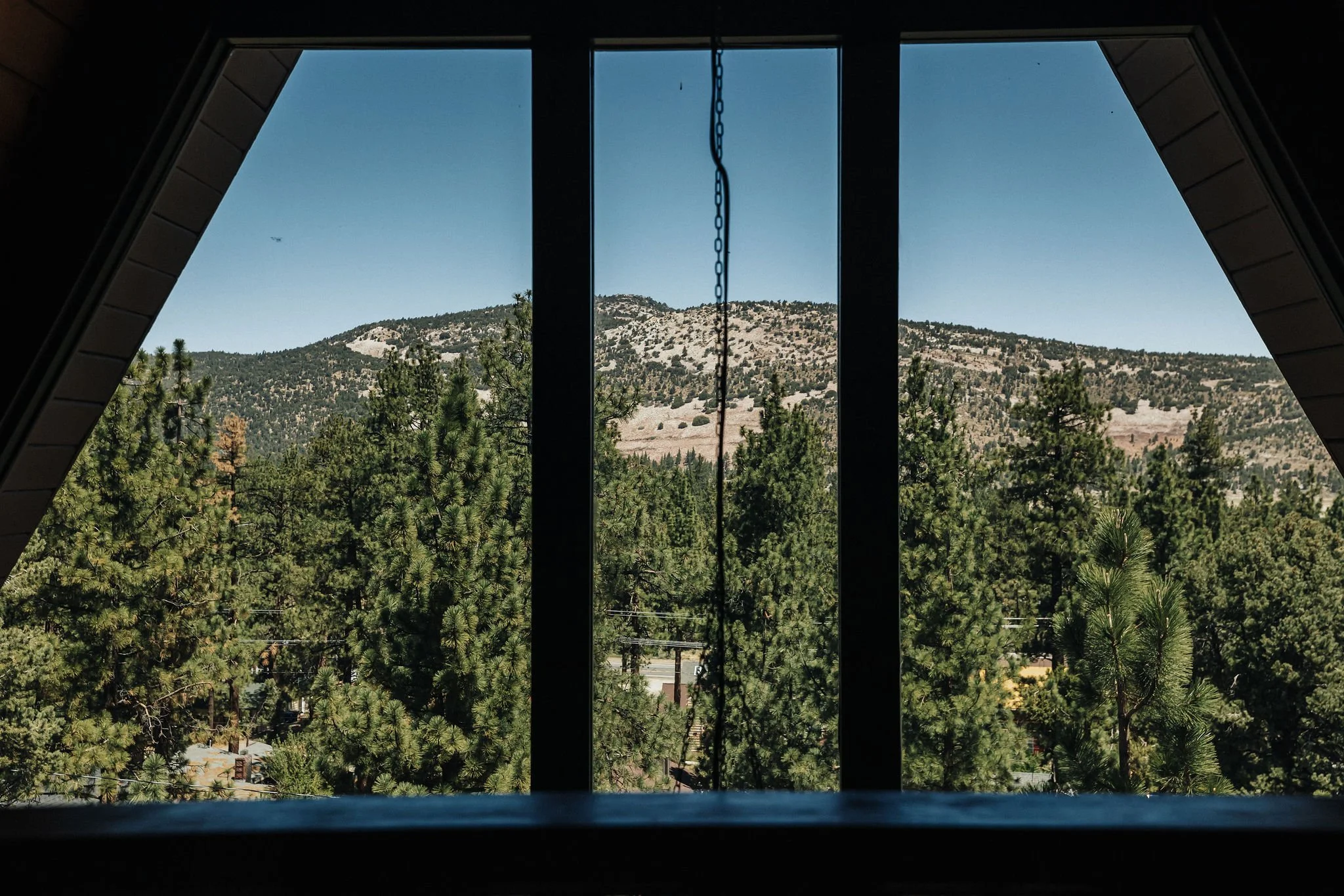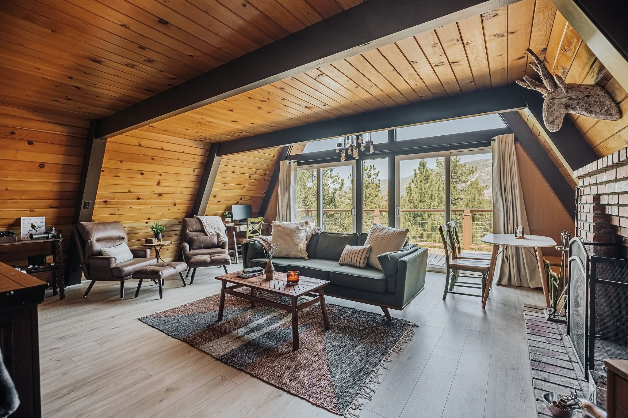 As you walk up the stairs and go left, you’ll walk into the loft which showcases the stunning cathedral view that A-Frame architecture is known for. Sleep in a Cal King Bed, get your thoughts together at the fully equipped desk and, of course, enjoy being on top of the world.