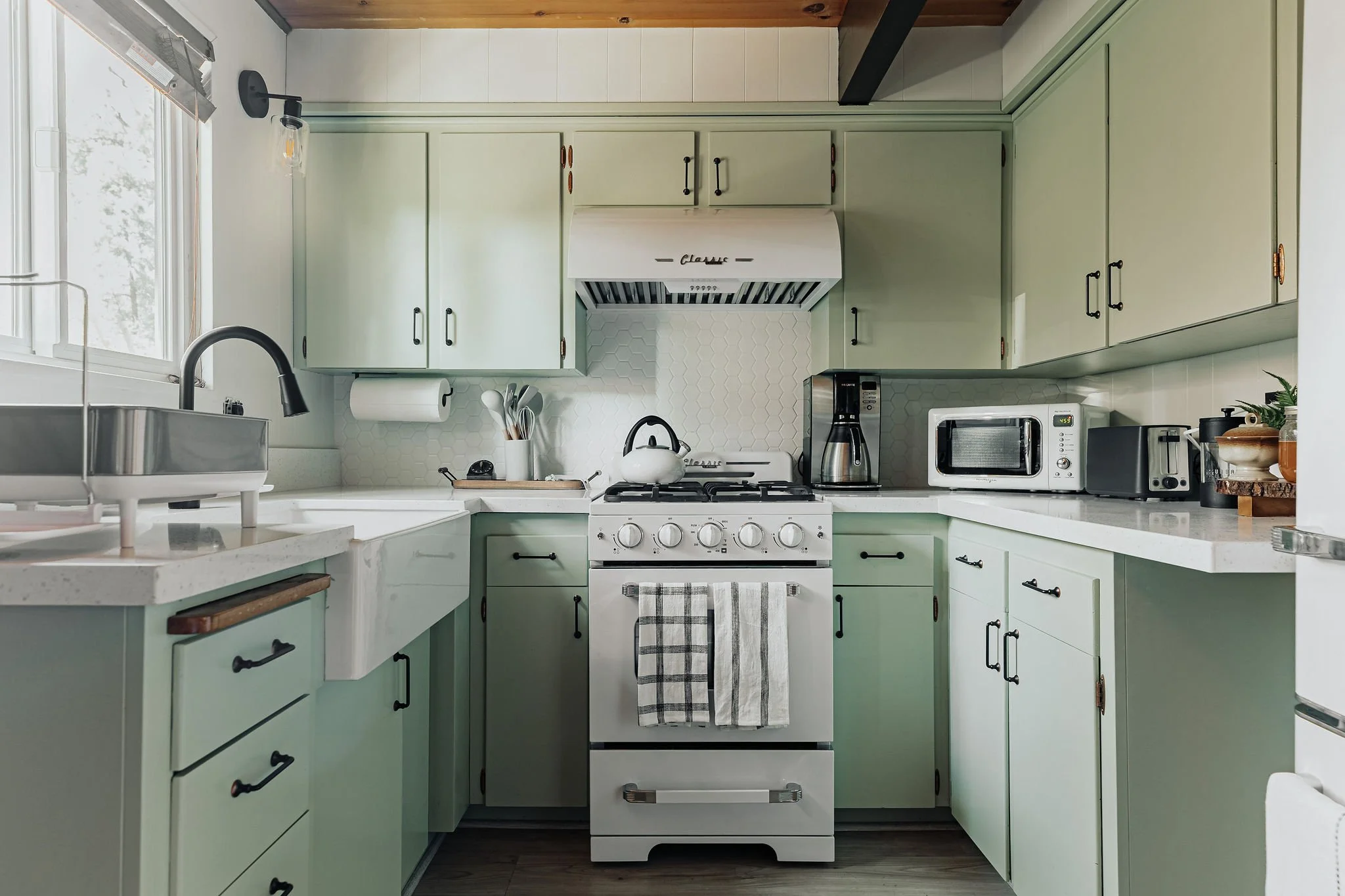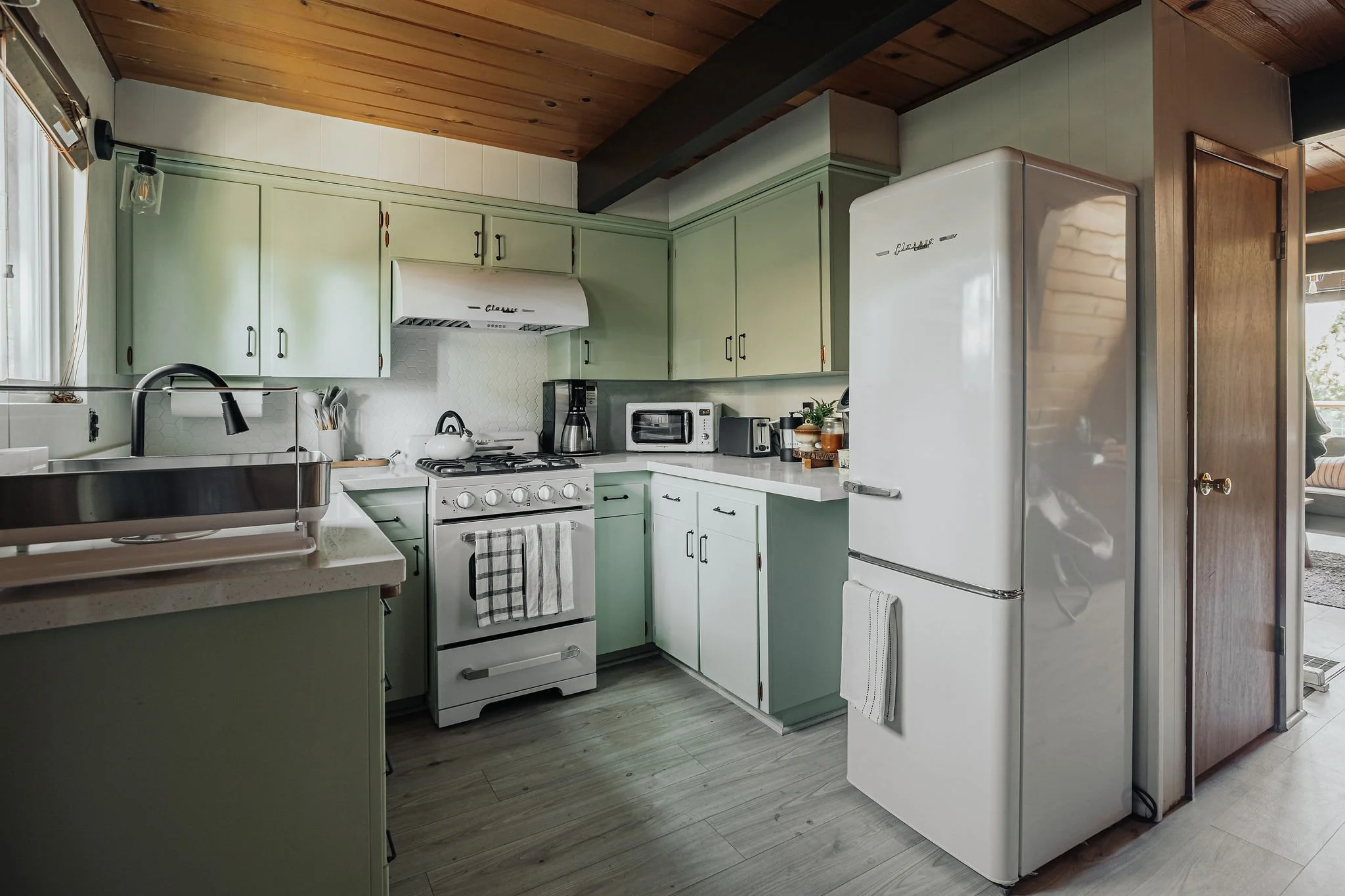 Fully renovated kitchen offers a 4-burner gas range, gas oven, farmhouse sink, full refrigerator and all the things you might need to cook up a delicious meal.